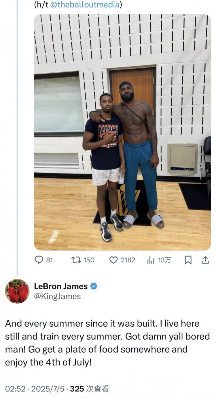 詹姆斯本人通过社媒X回应道:“自从它被建成以来,我每个夏天都去那里训练。我仍然居住在这里,每年夏天都会训练。你们这些人真无聊!去找点吃的,好好享受一下独立日吧!”
